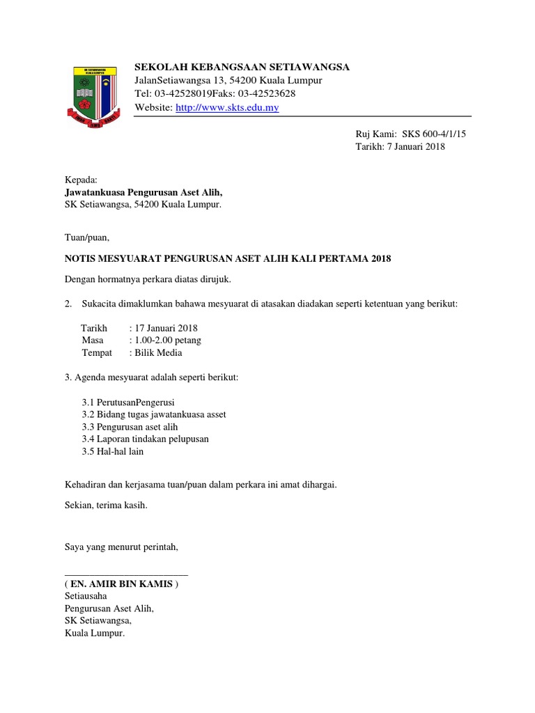 Surat Panggilan Mesyuarat Aset Kali 1 Pdf